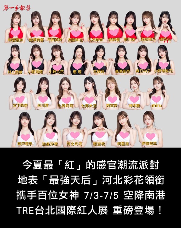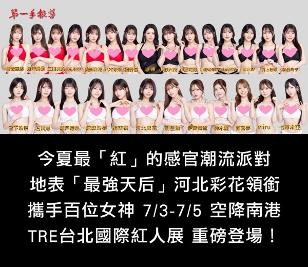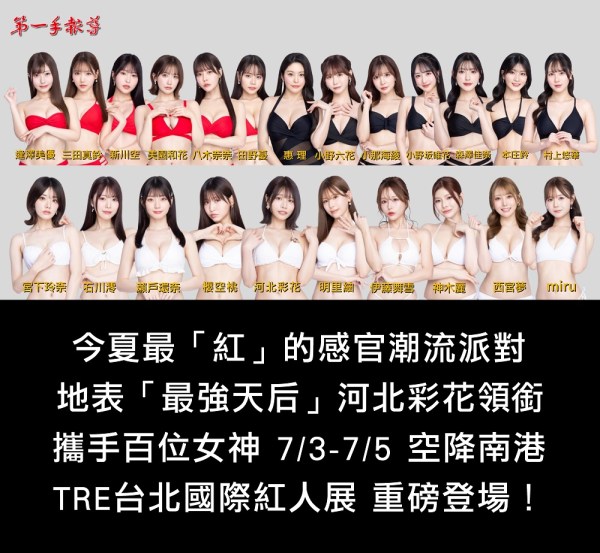 SS級女神降臨! 「最強天后」河北彩花攜手百位女神空降南港,TRE「台北國際紅人展」今夏最紅的感官潮流派對 7/3-7/5 重磅登場