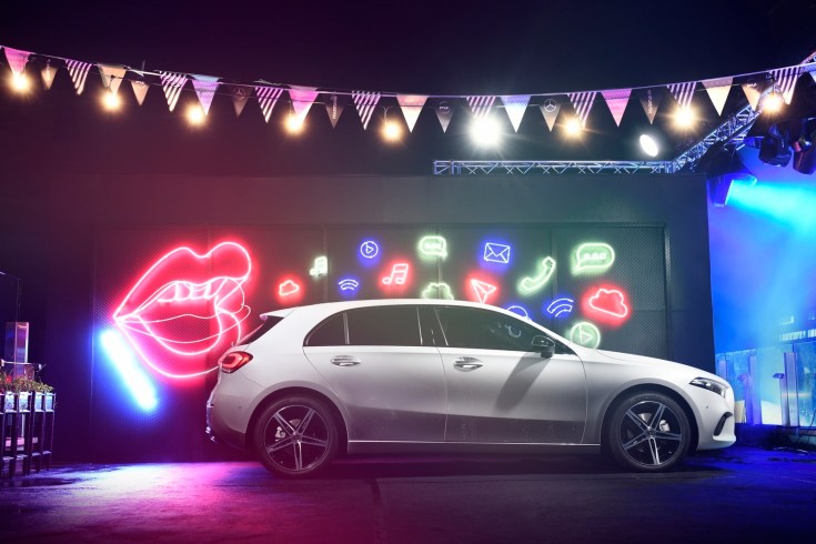 8月28日晚上,下班時刻信義區的購物商城、風格餐廳、著名影城依舊人潮熙攘,流光溢彩中,約莫晚間六點時分,諸多Mercedes-Benz車款往ATT4FUN購物中心駛近,匯聚眾多型男靚女之際,頂樓光彩更異常奪目,似乎宣告著一場重要派對即將展開!原來,Mercedes-Benz The new A-Class於此日正式登場,精彩的頂樓派對發表活動,結合精心設計的The new A-Class特色體驗區,一場都會叢林中的科技派對,熱鬧展開。