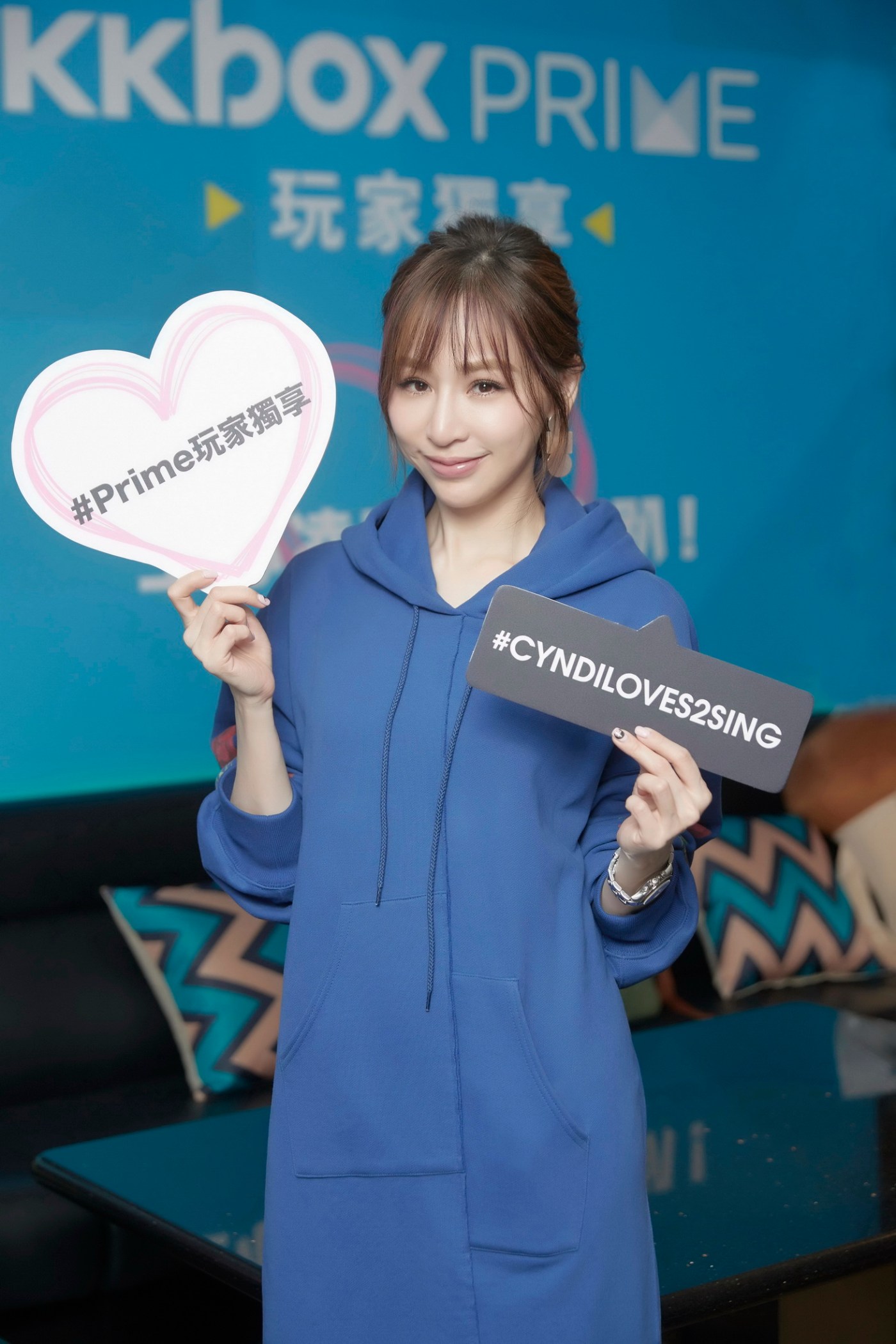 【12月23日,台北訊】睽違三年,Cyndi王心凌終於在12月推出第12張專輯《CYNDILOVES2SING愛。心凌》,甜蜜教主壓軸出輯果然氣勢如虹,在音樂上增添文青知性風格的她,首波主打〈在青春迷失的咖啡館〉由陳珊妮量身打造,推出後締造佳績拿下KKBOX「華語單曲日榜」、「華語新歌日榜」、「綜合新歌即時榜」等多項冠軍,對粉絲向來寵愛有加的王心凌,在聖誕節前夕獨家開趴獻給KKBOX Prime 會員,更配合抒情主打歌〈大眠〉,將主題訂為「王心凌K歌睡衣趴」粉絲見面會,用近距離、音樂交流、逗趣問答與粉絲度過這難得的K歌之夜,王心凌身穿藍色長版睡衣甜美亮相,面對現場質疑尺度太保守,她打趣說:「平常在家裡會穿比較少,怕今天穿來歌迷會流鼻血。」綜藝式談話讓全場笑翻,至於現實生活睡衣款式,她保密以「不便透露」留給粉絲無限想像。