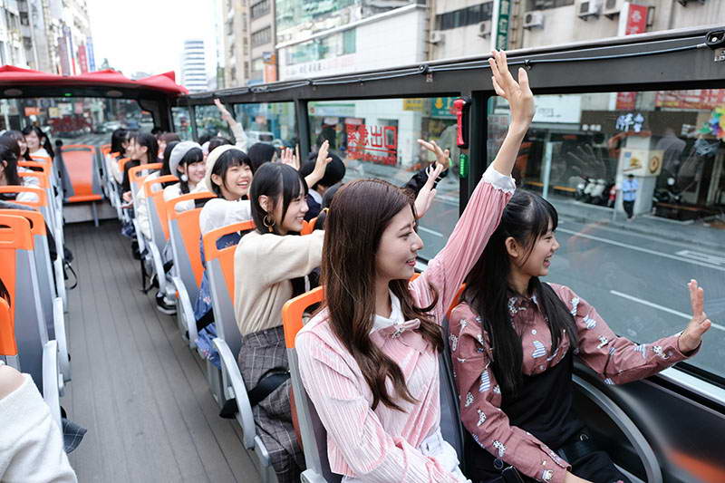 成員搭乘觀光巴士到握手會場地在車上與粉絲