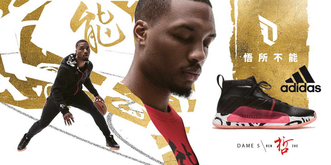 在迎接農曆新年之際,adidas正式發布NBA拓荒者隊明星控球後衛Damian Lillard第五代簽名戰靴DAME 5,更聯手中國著名雕塑藝術家任哲推出新年專屬版本──「悟所不能」。Damian Lillard於去年搶先上腳DAME 5鞋款進行實戰,隨即引起籃球迷的關注,專為Damian Lillard設計的全新DAME 5鞋款搭載全面升級的球鞋科技,加上霸氣的黑紅配色,讓Damian Lillard在賽場上無所不能、宰制全場!
