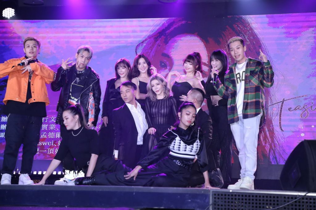 由左至右-「眾量級」Andy老師+「眾量級」張家寧+「台客電力公司」主唱柯大堡+王思佳+草爺+紅心字會秘書長李顯文+路路Lulu+「動靜樂團」主唱小無+歌手馬念先