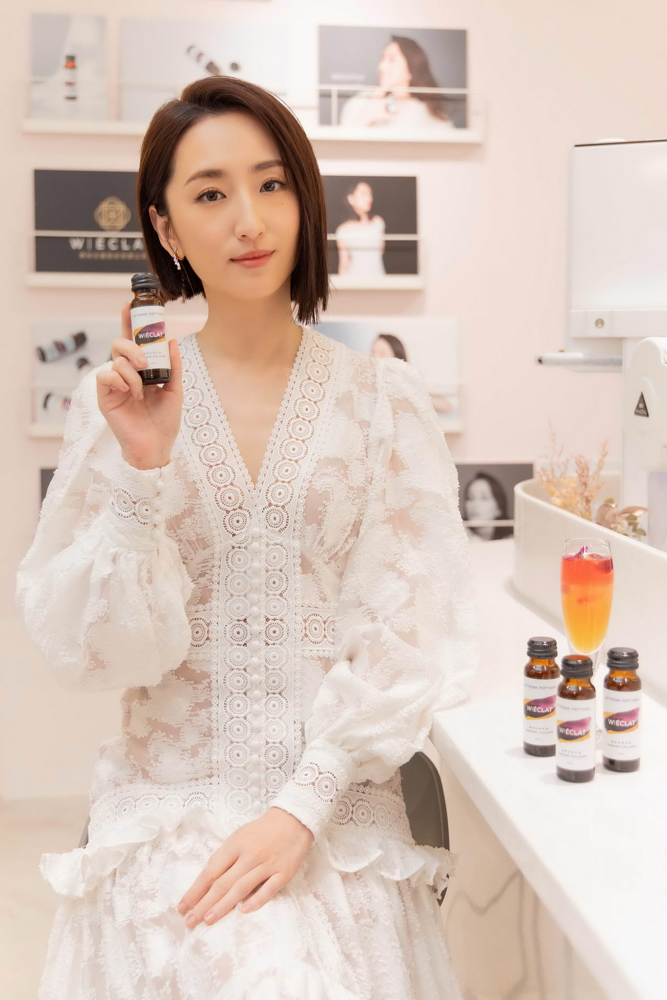 成為W l ÉCLAT品牌代言人 柯佳嬿表示,會選擇W l ÉCLAT的最主要的原因是「仙女飲」的成分中不僅僅添加了魚膠原蛋白還添加了鰹魚彈性蛋白,融合海洋與天然植物萃取,無香精、防腐劑、非基改,經專業科學研發與測試和完整研究數據,每個細節都不馬虎,所有成分皆具生產履歷,讓她非常的認同與信賴,想把這好的產品與大家分享。