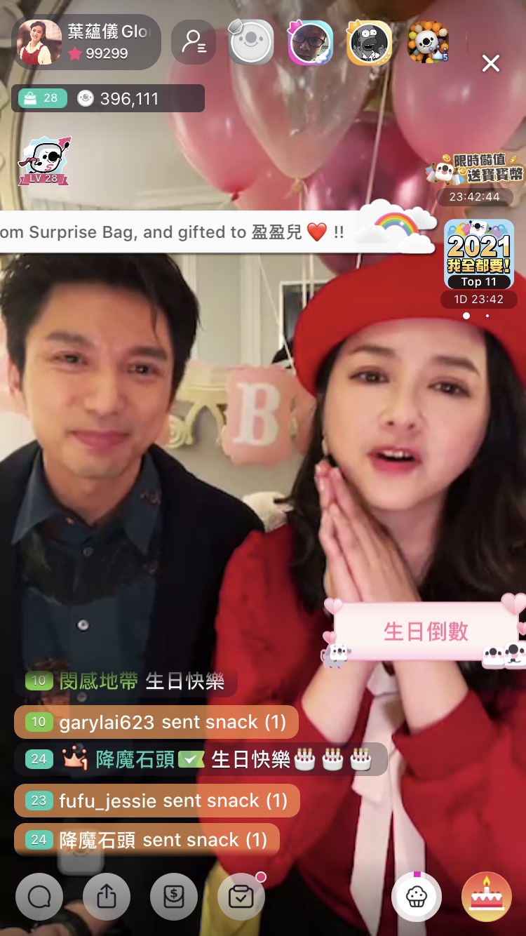 日前48歲生日前晚,葉蘊儀上線直播和全球各地粉絲一起倒數慶生,全球各地粉絲不斷狂丟生日禮物貼圖祝賀畫面上幾乎把她淹沒,很多人還稱讚葉蘊儀是永遠的18歲,之前一起參加真人秀節目《一切從失婚開始》的同組主持搭檔薛世恒也帶著禮物到場為她慶生,對葉蘊儀直播相當好奇的薛世恒還陪她同框直播,一起倒數邁入生日喝香檳切蛋糕慶生,粉絲紛紛拱薛世恒也趕快來開直播,葉蘊儀直播頁面各種功能操作已越來越上手,立刻以直播前輩之姿教起薛世恒,還不忘和線上粉絲即時互動適時道謝,開播一個月儼然已晉級專業LIVER。