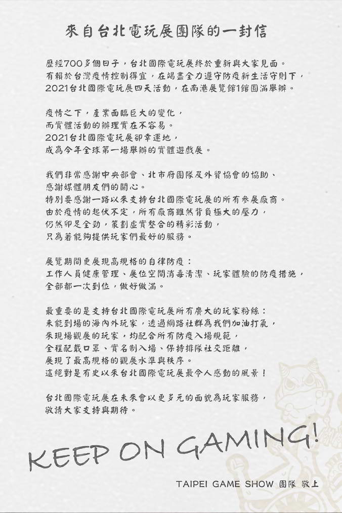 今年台北電玩展在主辦單位、參展廠商與入場玩家的三方通力合作下圓滿閉幕,有了這一年的經驗之後,台北電玩展未來一定會以更新更好的面貌呈現,也請大家在防疫之餘不要忘了「Keep On Gaming」一起玩下去,台北電玩展 See you next time!