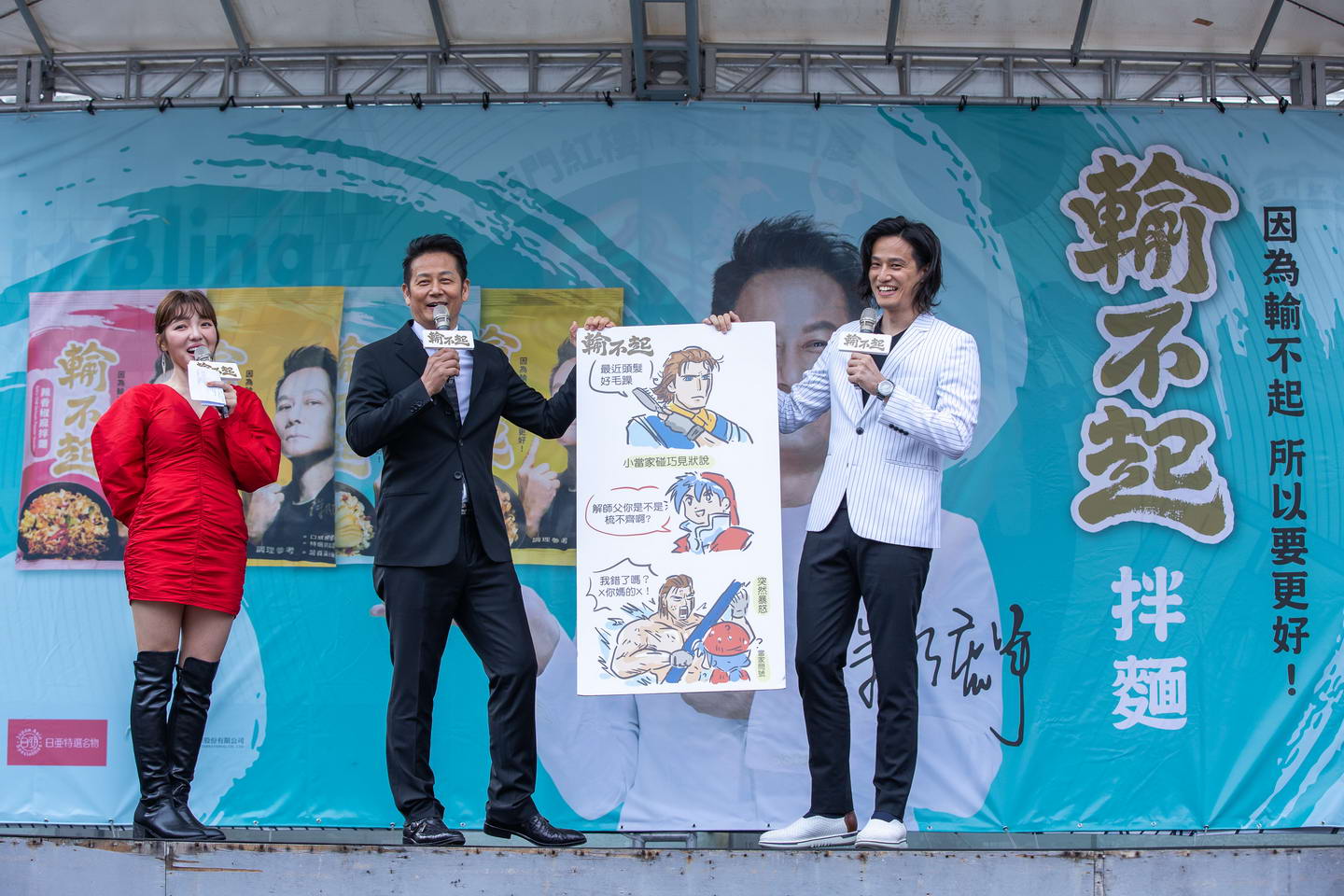 演藝圈大哥徐乃麟2021拓展事業版圖,進軍即食品市場,推出辣香椒麻、醇香麻醬、濃香油蔥、薑香麻油等4款「輸不起拌麵」,今(3/13)於西門町紅樓北廣場舞台區舉辦上市記者會。演藝圈20多位好友到場共襄盛舉,現場PK煮麵廚藝,並與現場民眾分享美味拌麵,徐乃麟提及拌麵取名「輸不起」表示:「曾經因為輸不起失足,今後更與輸不起為伍!」還透露拌麵才剛上市就接到很多詢問電話,他很有信心首批的4萬包可以很快一銷而空。