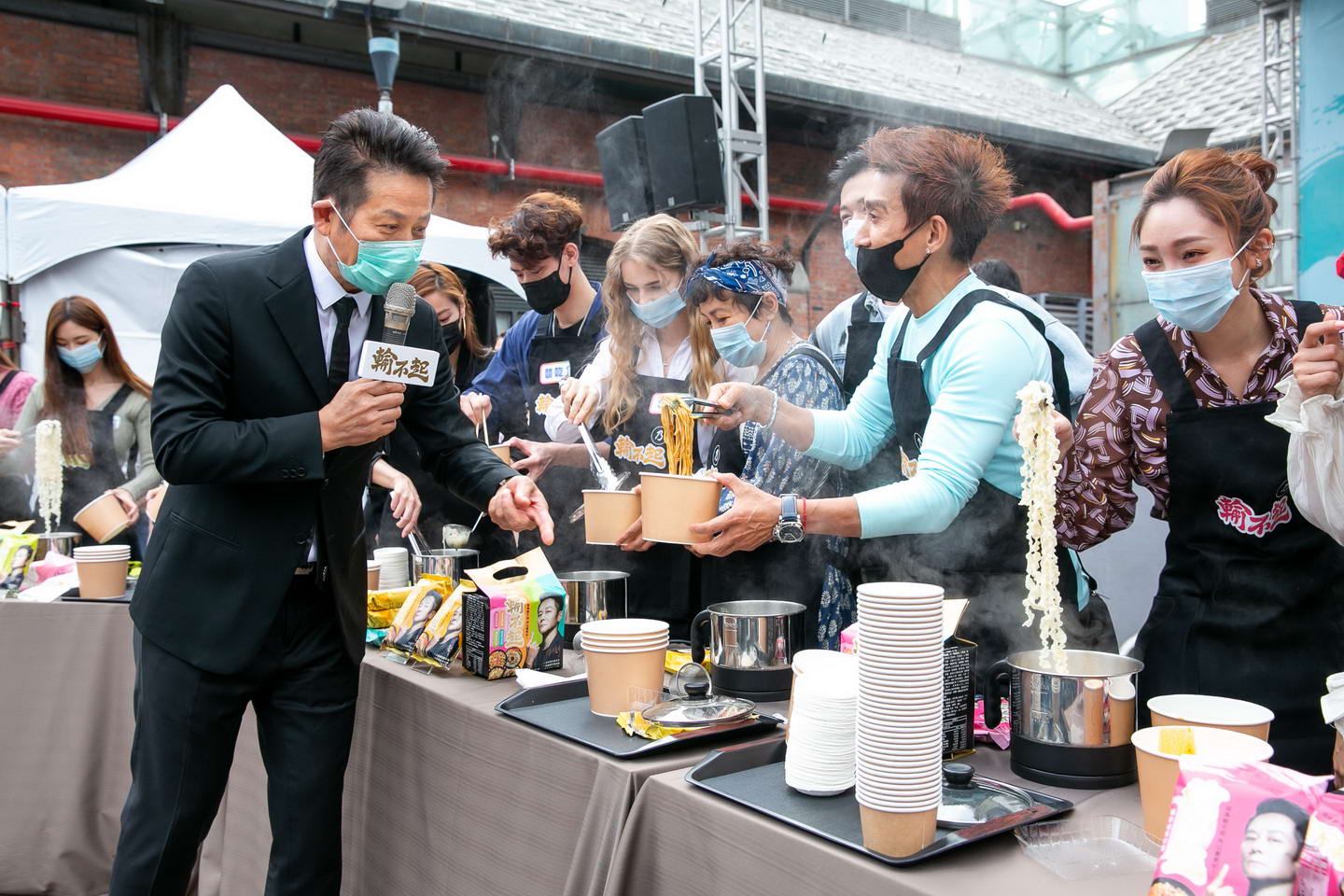 眾藝人兩兩一組PK煮麵技巧。艾迪昇傳播提供