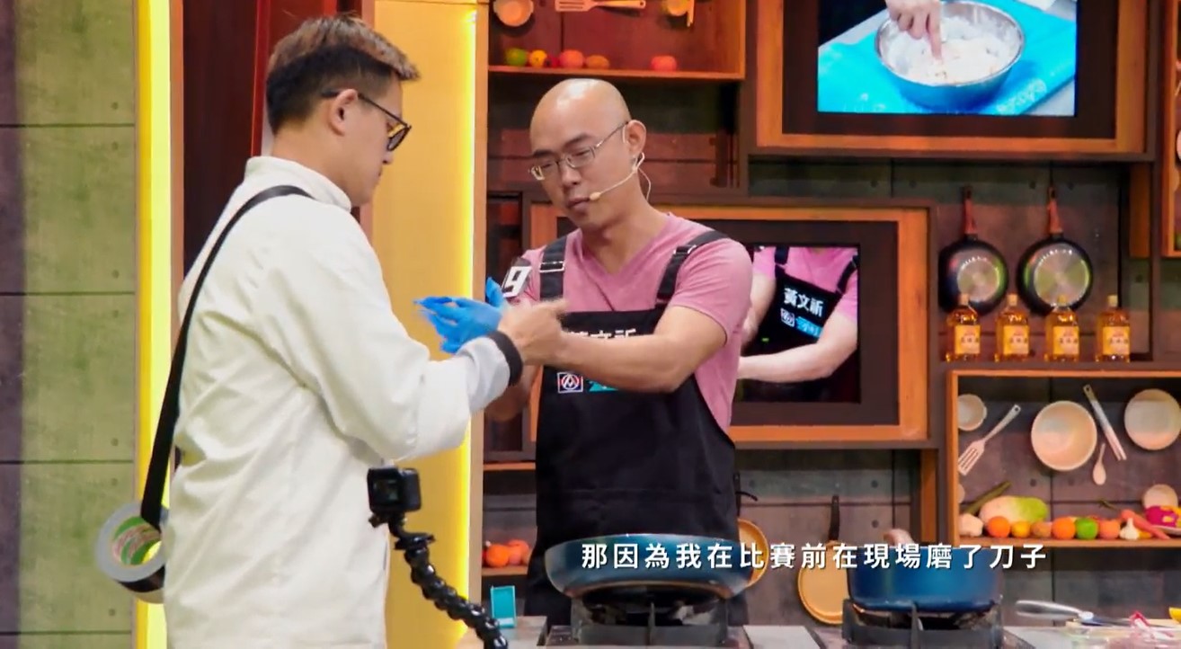 選手黃文祈則是不小心切到手,他自嘲是「本季第一個切到手的」,原來是比賽前把刀磨得太鋒利了,所幸傷口不深無大礙,也讓人想起第一季時選手熊以馨也曾出現切到手的狀況,讓眾人印象深刻。不過他說煎鴨胸連許多厲害廚師都容易搞砸,卻遭到Fred霸氣回嗆「我沒有失敗過,不好意思」,氣勢之強讓黃文祈直接拜服「請接受我的膝蓋」!