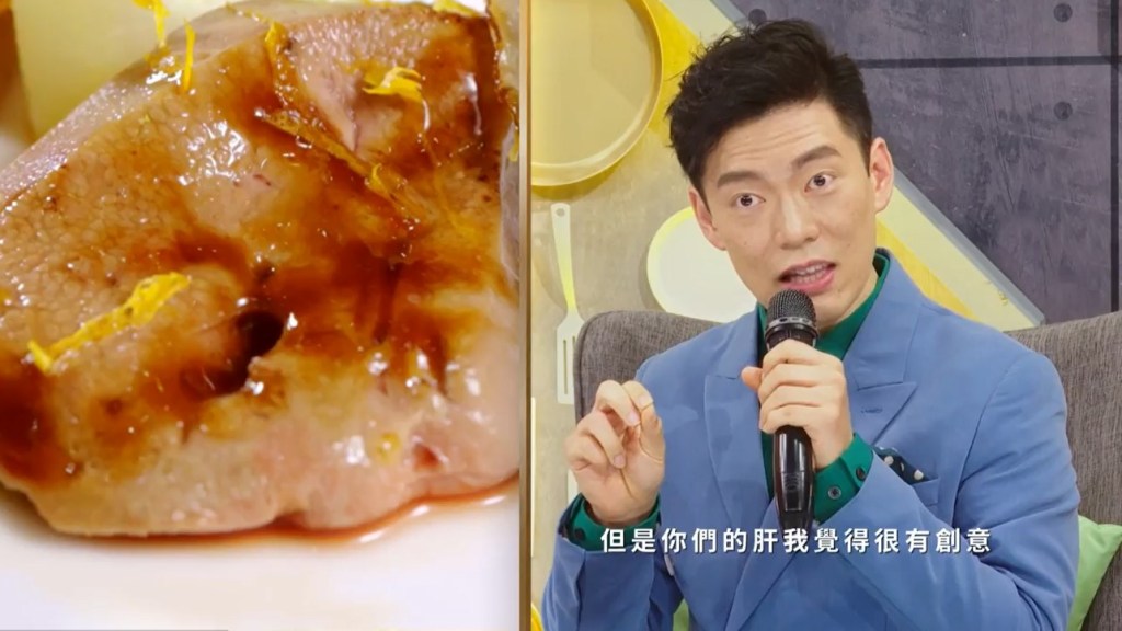 林彥碩發揮創意,菜脯蛋加入玉米粉和莫札瑞拉起司做成舒芙蕾點心,豬肝則搭配巧克力醋醬、蒜泥蛋黃醬,創造出全新的口感,讓Jason Wang王凱傑都相當讚賞,不過高仲彣說最後要用「噴槍布蕾它」,讓最不愛噴槍的Jason