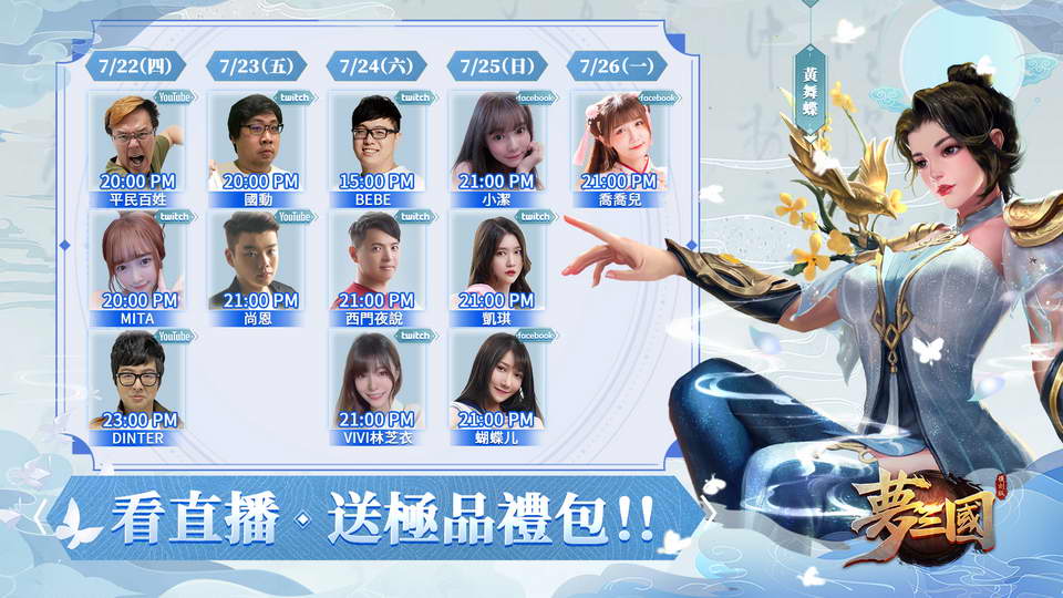 ◆ 7/22(四) 平民百姓於 youtube 平台 20:00 直播 ,Dinter於 Youtube 平台 23:00 直播,mita於Twitch平台20:00直播