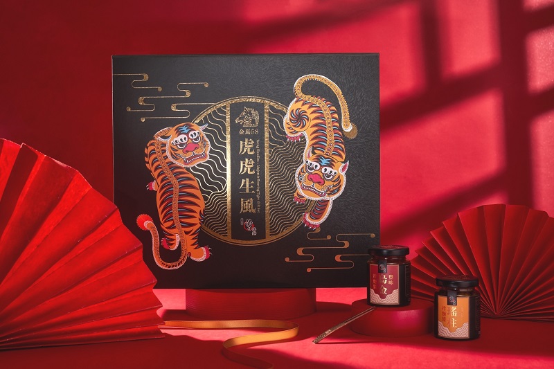 禮盒封面以年節氣息濃厚的雙虎圖騰刻畫,加上盒面燙金和虎皮壓紋等細節,整體精緻高調又極具氣派。禮盒更是剛剛才圓滿結束的第58屆金馬獎大會指定入圍貴賓禮。