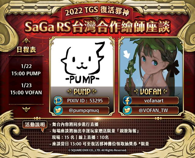 Taipei Game Show ONLINE晚上繼續嗨 遊戲大廠新訊公開台北國際電玩展首次跨界與電玩節目《共玩湯》及PlayStation平台、萬代南夢宮娛樂、SQUARE ENIX等知名遊戲大廠合作,推出線上特別節目2022 Taipei Game ShowONLINE,由專業電競主播湯米與技術型實況主貝莉莓搭檔主持,1月22日至24日每晚6點起在線上與玩家們一起嗨,來賓包括知名實況主6tan、蝦愛橘子、旅日賽車手WandereR小湯、魔法少女可凡與逸馬的桌遊小教室等。節目中將有許多大作、新作資訊公開,包括日本知名遊戲大廠SQUARE ENIX預計於