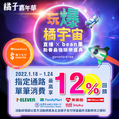 ● 橘子嘉年華「豆陣來bean果」,帶給你最新活動體驗、最好玩的限時直播聊天室。請至雙平台