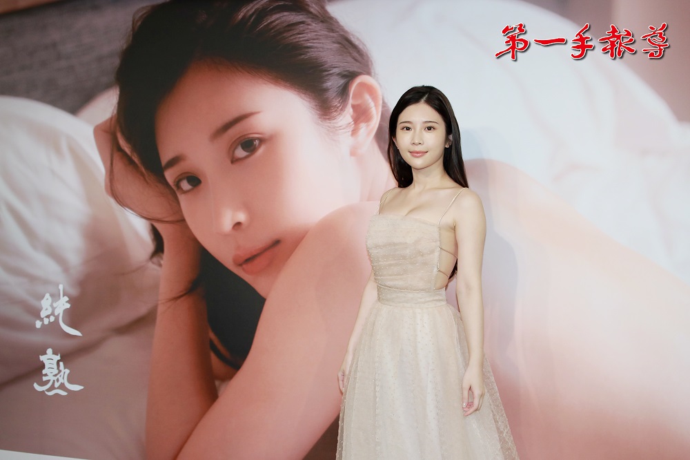 ▲鄭家純胸前只綁著一塊布的透膚禮服,出席寫真見面會。