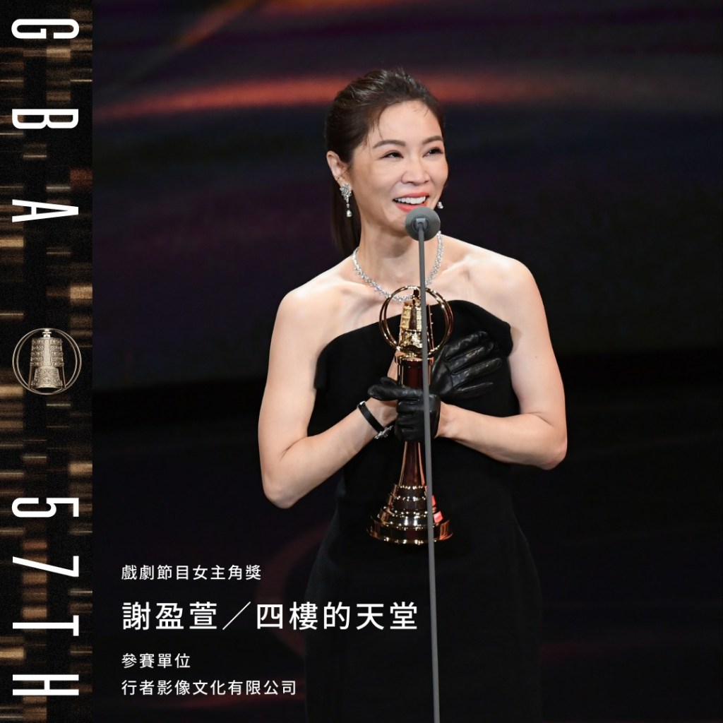 ▲謝盈萱以《四樓的天堂》心理醫師,奪下金鐘獎最佳女主角。