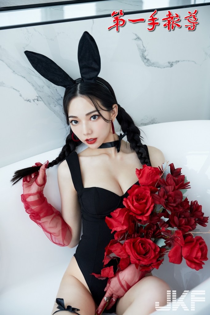 為了迎接兔年到來,JKF拍攝一系列啾啾開高衩性感兔女郎床照,結合了扣人心弦的張力與赤裸裸的能量,將寫真風格完美呈現,粉絲朋友一定要買回家收藏。