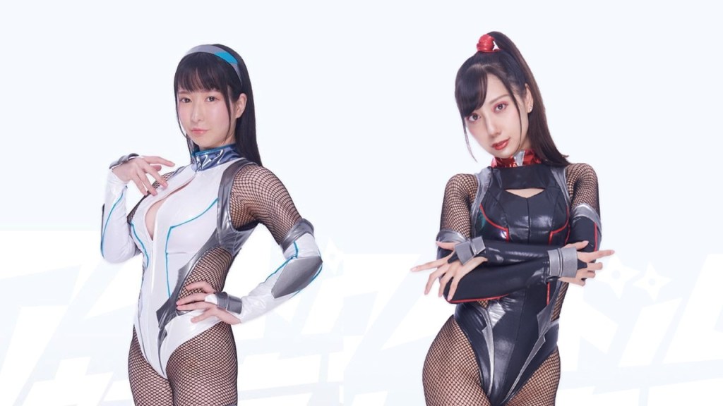 ▲參展女優「偶像對魔忍」(左起):雨宮留菜、菜摘,作風與尺度都以大膽聞名寫真界。