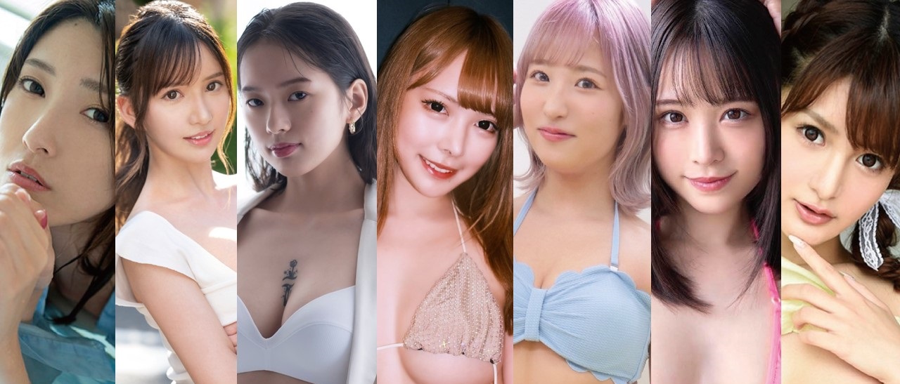 ▲參展女優,「阿朵企画、山峸製作」邀請(左起):吉岡日和、MARICA、上羽絢、南梨央奈、松本梨穗,期待與民眾互動。