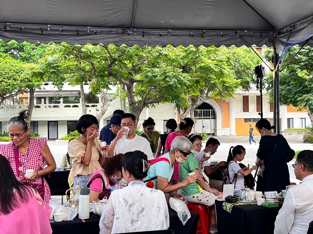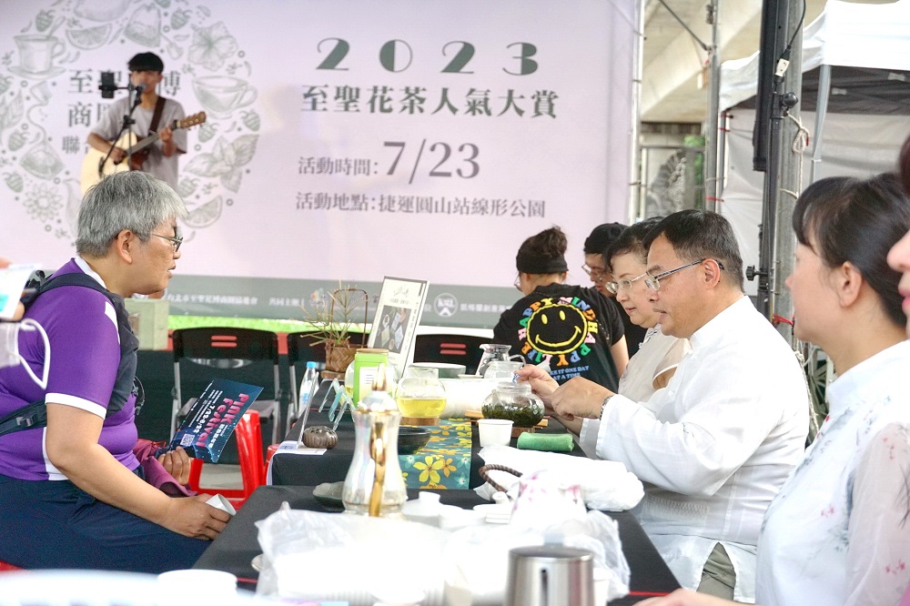 「2023至聖花茶人氣大賞」於7月23日在捷運圓山站線形公園辦理,計有10個茶藝工作者前來參與競賽,總計提供至少30種花茶給喜愛品茗的民眾試飲,只見走入花博的百位民眾,拿著剛泡好的花茶試喝兼解渴消暑,不管是大朋友、小朋友,甚至是外籍觀光客,都稱讚臺灣花茶品質「一級棒」,讓花博公園茶香四溢。