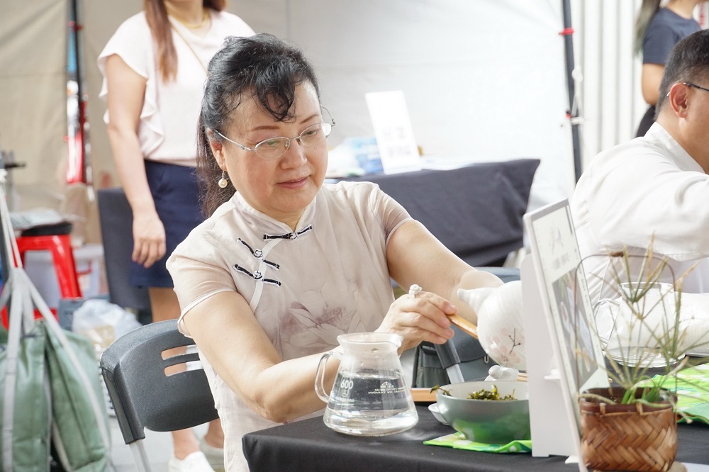 本日最受囑目的攤位為「竹峰茗茶」,為致力推廣臺灣茶藝文化,歷經四代傳承的百年茶園竹峰茗茶,特地前來參與「2023 至聖花茶人氣大賞」,該茶園以古法創新研發自家特色茶品如梔子花烏龍茶、相思炭焙茶及蜜香紅茶聞名,活動日還加碼提供貴婦茶、野薑花茶、槴子花烏龍茶給喜愛品茗的民眾試喝,也有眾多民眾當場下訂單。