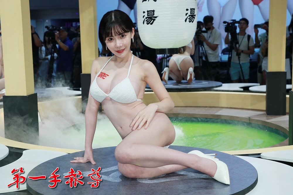 TRE展場中央特別設置日式「溫泉錢湯」,外圍有一圈轉盤,擺放了各種與湯泉相關的道具,像是大吟釀、清酒瓶、沐浴木盆、木勺等,彷佛來到了湯屋之中!人氣性感女神輪番上陣福利大放送,將展現火辣性感撩人的一面,從蜻蜓點水到熱辣激情,就已足夠引發觀展民眾豐沛的幻想超能力,勢必滿足每一位粉絲朋友的心。