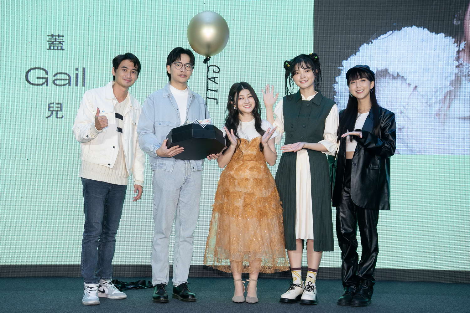 《聲林之王》學長姐齊聚祝賀蓋兒Gail,左起為劉學甫、鄭可強、蓋兒Gail、許淨淳、「牙牙」林怡廷。(圖:量子娛樂提供)