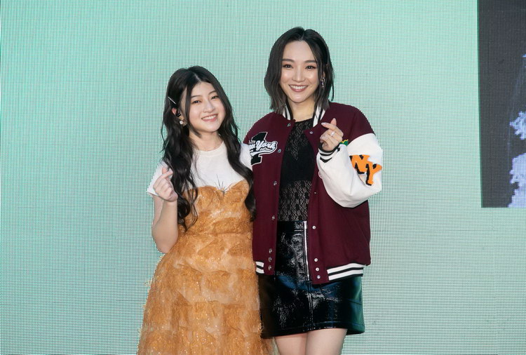 閻奕格(右)出席全民妹妹蓋兒Gail專輯發布會。(圖:量子娛樂提供)