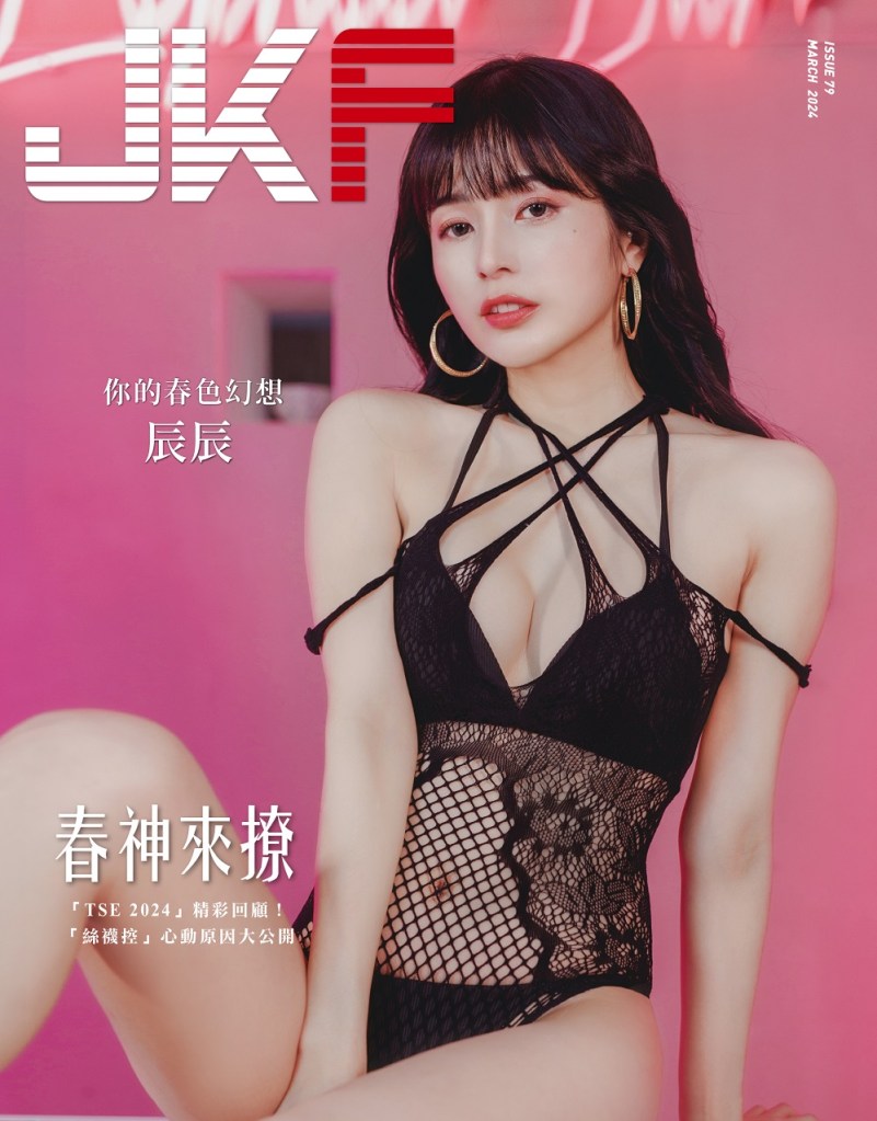 外型搶眼的辰辰擁有D罩杯曼妙好身材,這次特別換上黑、粉兩色蕾絲內衣,展現既性感又清純的衝突風貌,這次受邀再度拍攝擔任JKF封面女郎,以最自然清新的一面,挑戰不一樣的性感,讓不少粉絲險些把持不住凍未條!
