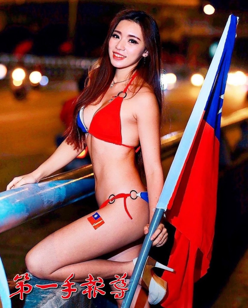 ▲每年雙十節謝立琪都會身穿國旗比基尼到各地拍攝作品。