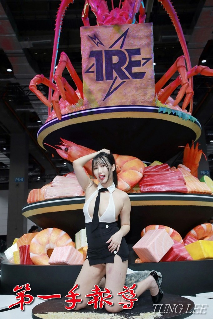 ▲TRE推出一座超大型「海鮮丼」裝置藝術,女神們將在旋轉台上,與參展民眾粉絲進行互動。