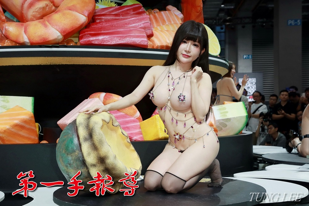 寫真女郎們性感尺度不設限,乳腿齊發更端出籃球奶露半球「正面挖空」,甚至左、右半球炸開見人,大秀渾圓巨乳,衣著相當驚人!來自日本的Maitei近乎全裸拼場,僅重點部位有布料蓋住,側腰也是若隱若現,女神相互爭奇鬥艷,讓場面相當熱鬧。