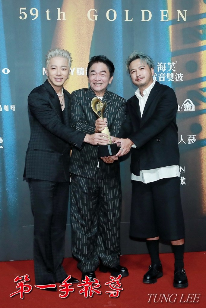 ▲拿下最具人氣綜藝節目獎,主持人吳宗憲(中)、KID(右)與謝坤達(左)領獎後開心合影。