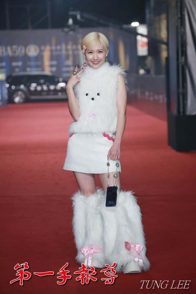 ▲LuLu (黃路梓茵)以一身「馬爾濟斯」裝扮亮相,搭配全白毛絨長靴,相當吸睛。