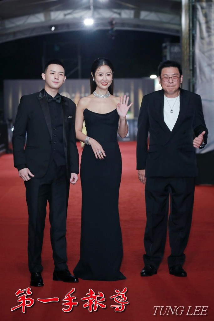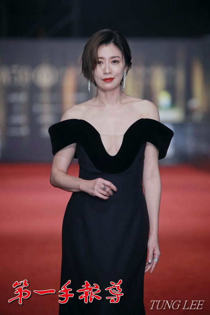▲林心如穿著黑衣胸前大U禮服亮相,由她製作的《有生之年》奪下6個獎項。