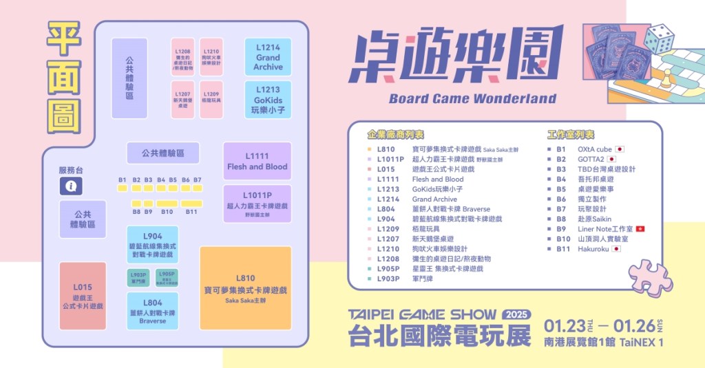 26日在南港展覽館1館登場,最具話題的專區「桌遊樂園」平面圖率先揭露,包括《