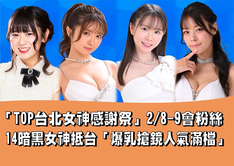 14位日本頂流「暗黑女優」登陸台灣「TOP台北女神感謝祭」2/8-9激攝全場甜勾粉絲