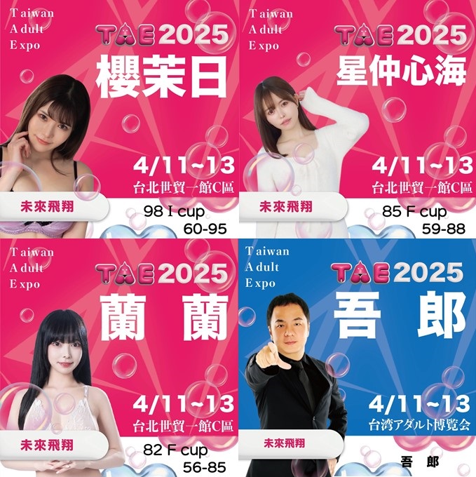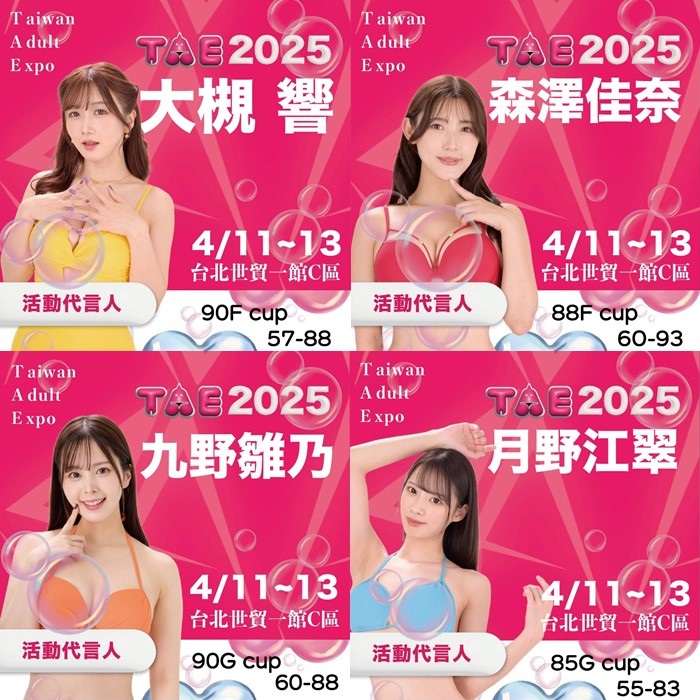即將在 4 月 11 日至 13 日在台北世貿一館盛大登場的2025年 TAE 「台灣成人博覽會」,為男性同胞帶來一場視覺與感官的雙重盛宴。今年春夏最受矚目的成人娛樂盛事,現場集結來自世界各地的性感女神,包括日本頂流暗黑女優、韓國性感女神、魅力四射的帥萌男星,以及國際級寫真女郎、大尺度 Coser 和台灣高人氣女神共襄盛舉,為參展民眾粉絲們帶來前所未有的互動體驗。