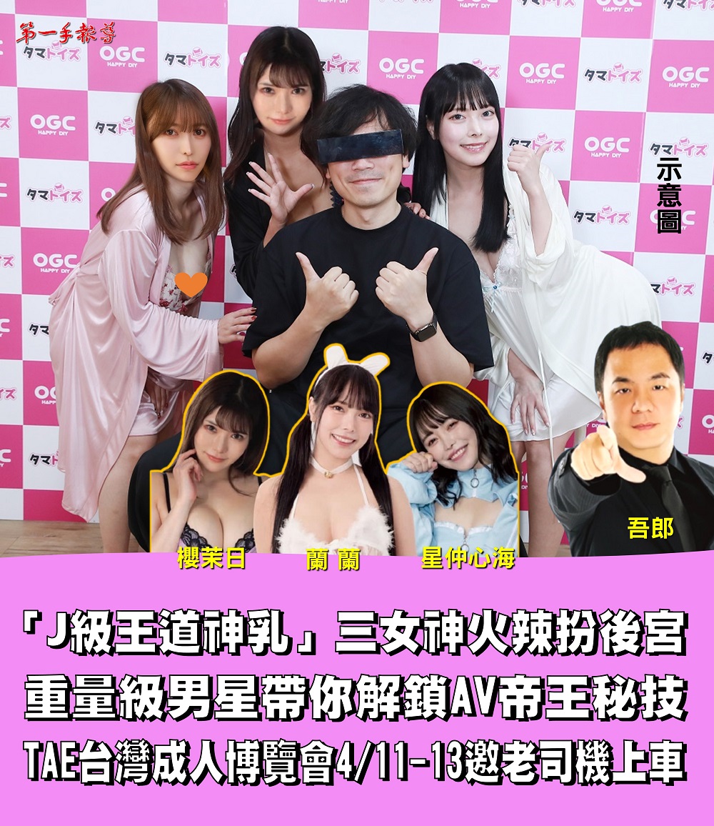 「J級王道神乳」櫻茉日、蘭蘭、星仲心海,暗黑三女優空降來台火辣扮《後宮巨乳陣》,「帥氣男星」吾郎帶你解鎖AV帝王秘技! 一王3后4/10與粉絲零距離接觸「TAE台灣成人博覽會」邀老司機上車