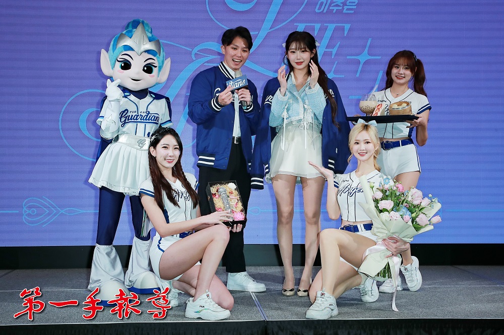 韓國KIA Tigers知名啦啦隊員,被譽為「AI女神」的李珠珢(Lee Ju-Eun),正式與富邦育樂簽下台灣演藝工作全經紀約,成為富邦育樂歷史上首位,擁有全約的啦啦隊成員。今天下午富邦悍將特別為她舉辦了高規格的媒體記者會,熱鬧非凡,足見球團對她的重視程度!記者會上也和學姐們一同表演經典的「32撞」。