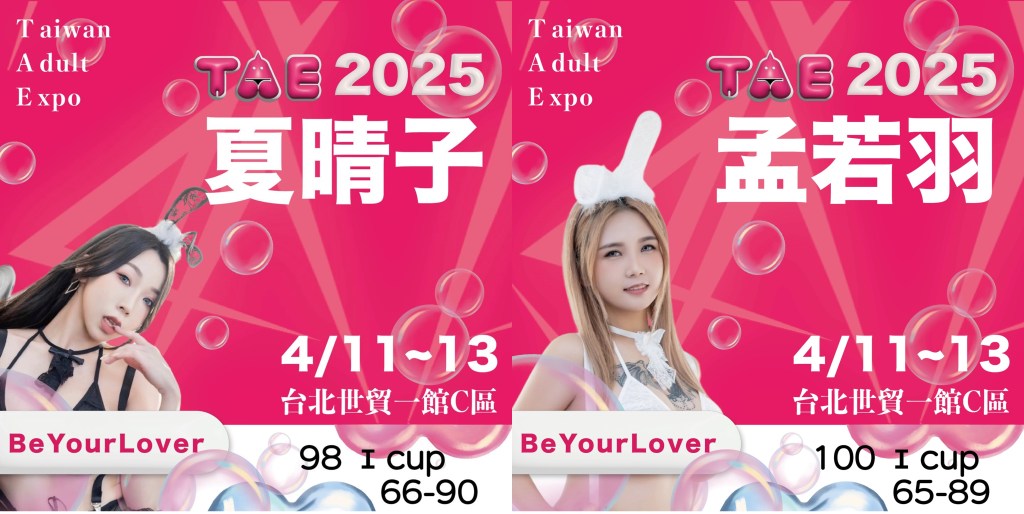 一年一度亞洲男性最強成人娛樂盛事,2025年TAE「台灣成人博覽會」即將在4月11日至13日在台北世貿一館盛大登場,今年陣容卡司、場景大升級。現場匯集國際級性感偶像齊聚一堂,包括國際日本、韓國、歐美性感女優、超帥氣男星、知名寫真女郎、大尺度Cosplayer、知名二次元Coser、台灣高人氣王牌女神等眾星一字排開親臨現場,帶來視覺與感官的雙重饗宴!