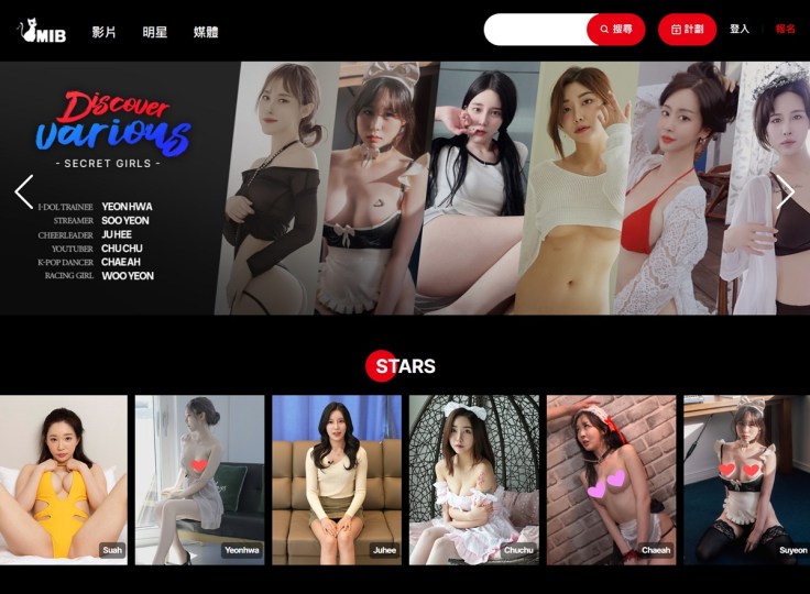 ▲韓國AV進軍台灣市場、搶攻中華圈客群,MIB海外成人娛樂影音平台「k-mib.com」同步上線。(圖:翻攝自k-mib.com)