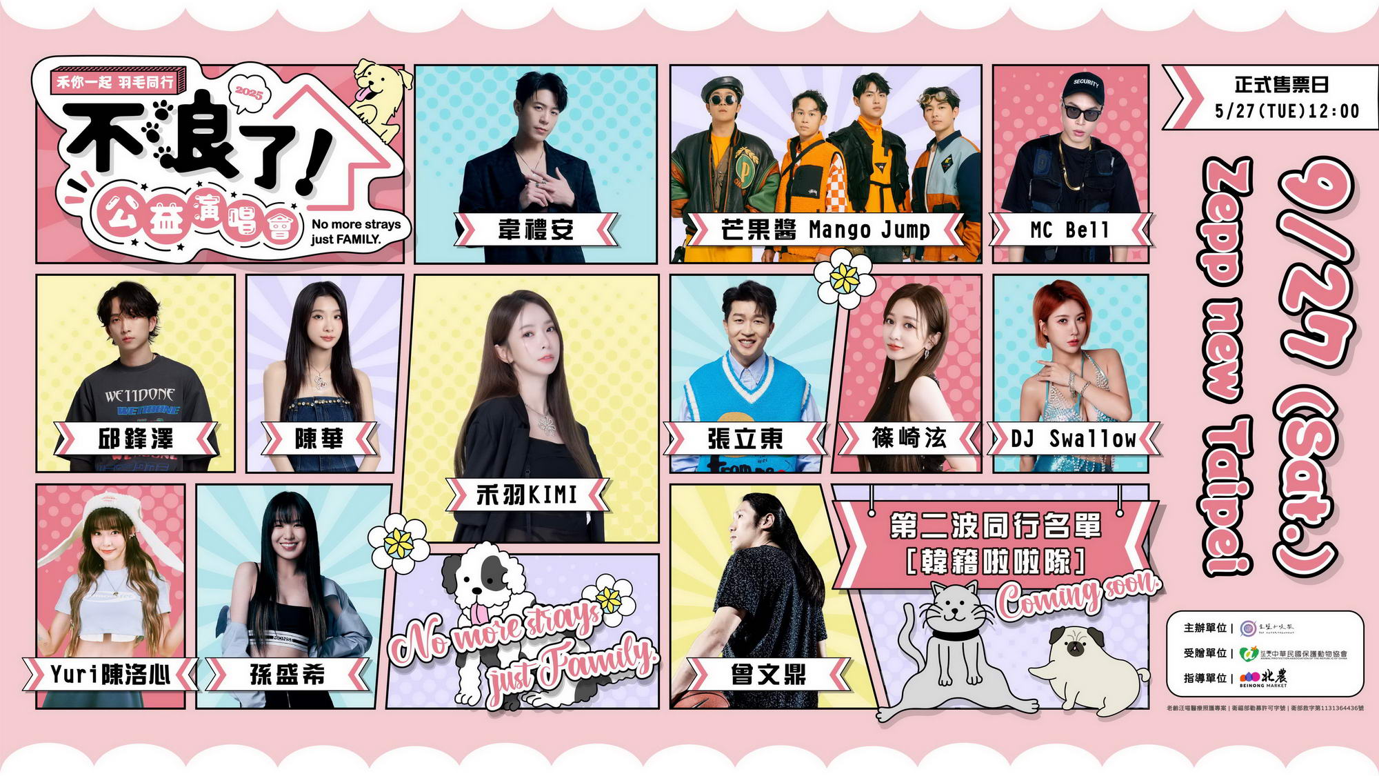 主辦方也同步公開系列活動最大亮點《禾你一起 羽毛同行 不浪了!公益演唱會》陣容,預計於9月27日在 ZEPP New Taipei 盛大登場。本次演唱會由人氣歌手禾羽KIMI擔任協會公益代言人及主秀歌手,並攜手創作才子韋禮安、靈魂歌后孫盛希、唱作型男邱鋒澤、療癒女聲陳華與人氣樂團芒果醬等超強卡司,集結音樂與愛心,打造一場充滿故事、情感與力量的音樂盛會。