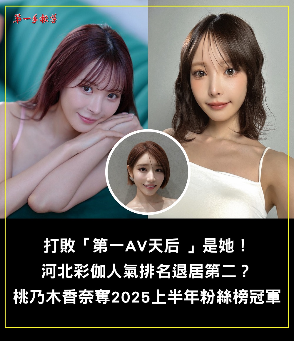 PTT「Beauty板」近日有鄉民分享並轉發了「2025年上半年日本女優X平台粉絲數排行榜」,引發熱烈討論。榜單前十名可說是當今人氣與話題度兼具的代表人物,依序為桃乃木香奈、河北彩伽、七澤米亞、涼森玲夢、本鄉愛、希島愛里、Miru、新有菜、伊藤舞雪、藤森里穗。