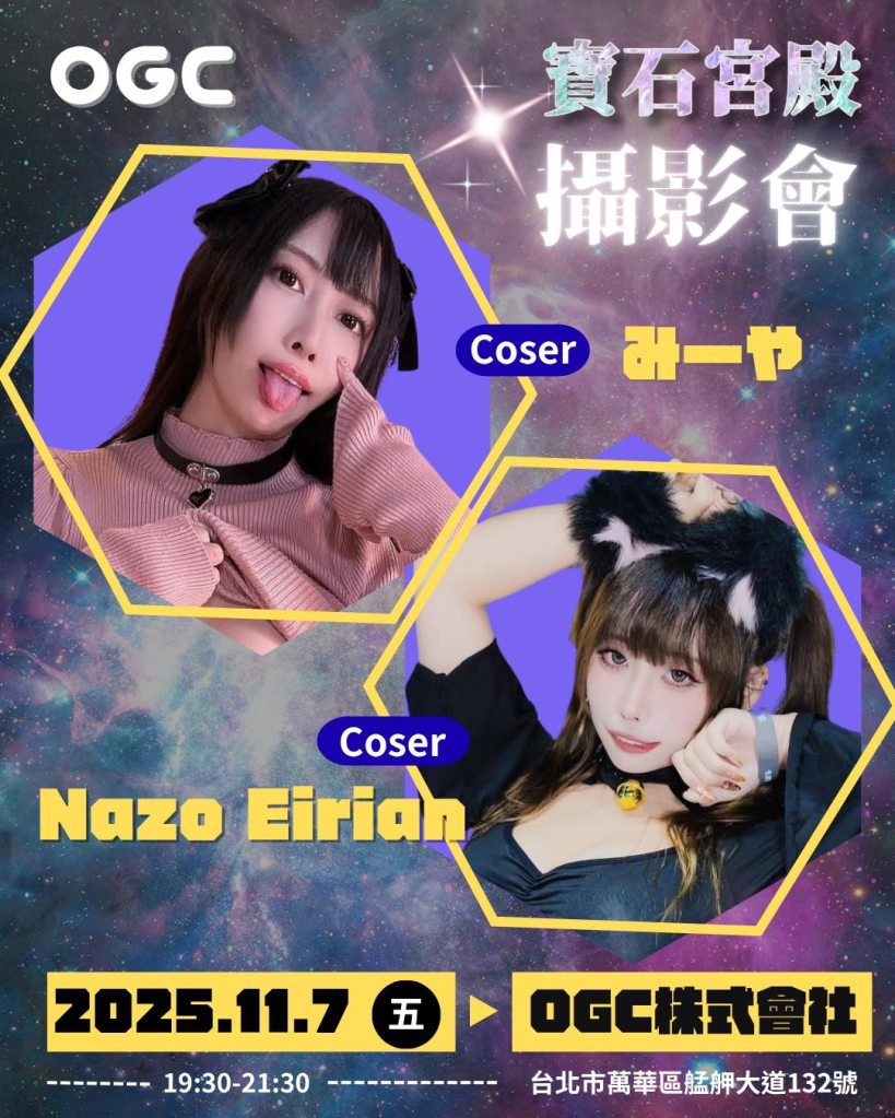 日本、香港知名大尺度「COS女神」 Nazo Eirian 與 Miya(みや) ,將於 11月7日(五)出席 《OGC株式會社-雙Coser攝影會》,帶來令人心跳加速的近距離互動拍攝!兩位女神不僅外型精緻亮眼,更擁有天然碩大巨乳,再搭配精緻還原度極高的COS造型,每一次亮相都讓人目不轉睛!
