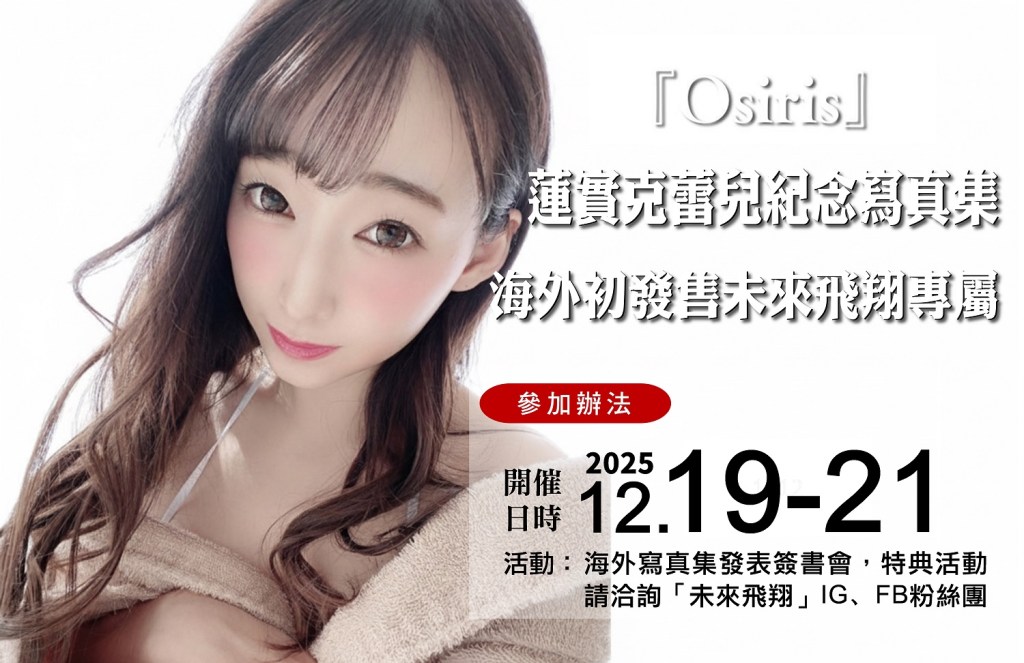 一連三天的活動,蓮實克蕾兒表示:「台灣是我最想分享寫真集《Osiris》的地方,我想把最性感、最美的自己獻給你們。」請大家準備好迎接女神降臨,用心臟承受她的魅力衝擊吧!最新活動歡迎洽詢「未來飛翔」 IG、FB臉書官方粉絲團。