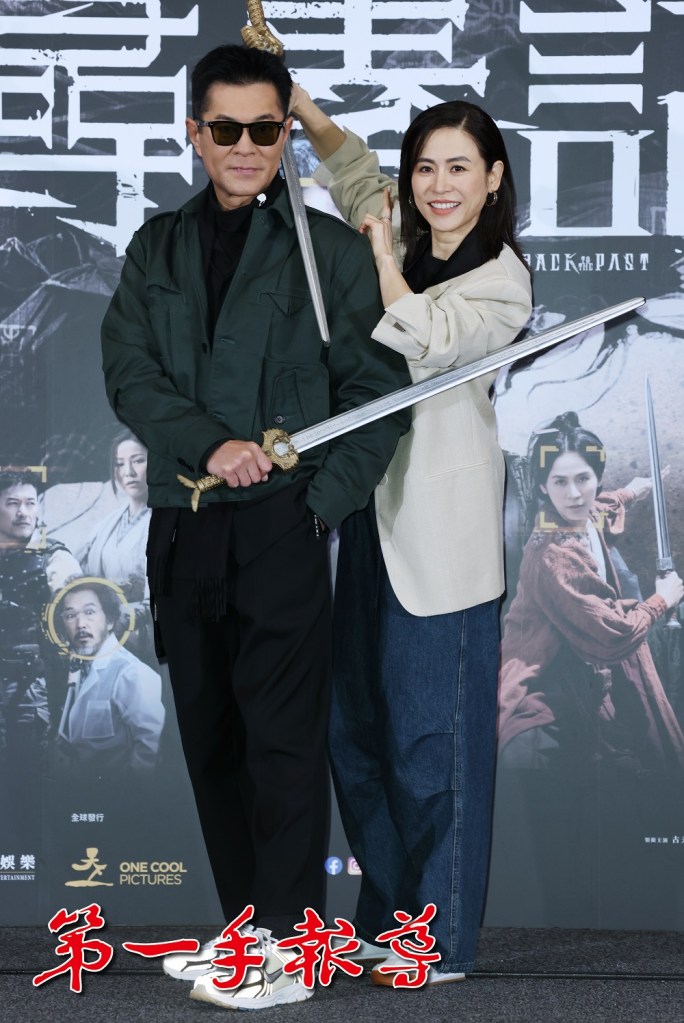 ▲古天樂(左)和宣萱(右)旋風來台為電影《尋秦記》造勢。(圖:本刊攝影 李東穎/以下同)