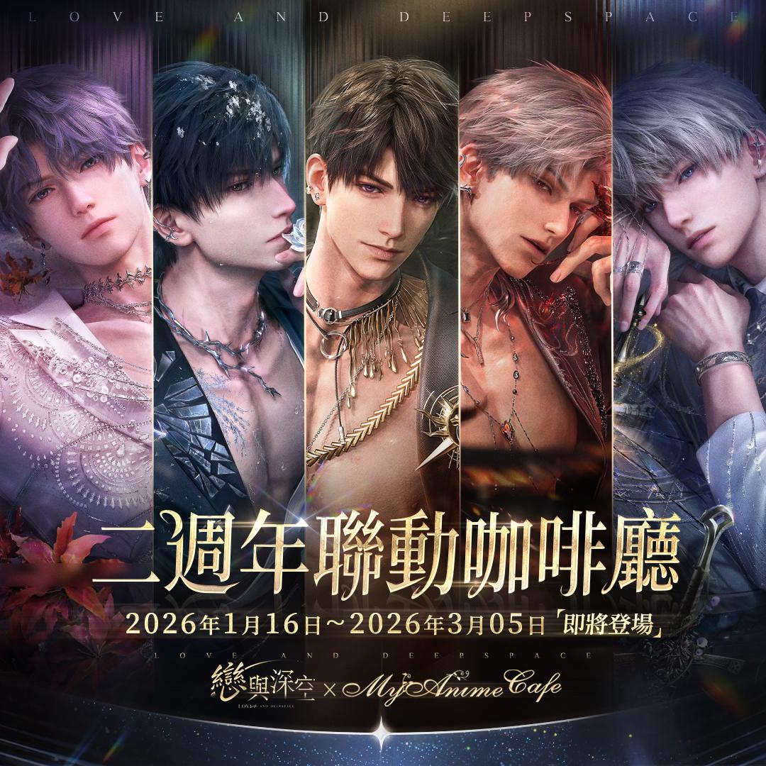 超現實3D沉浸戀愛互動手遊《戀與深空》正式開啟二週年特別慶典。為感謝獵人長久以來的喜愛與支持,不僅在遊戲【家園】玩法中可以與心儀的他共賞絢爛煙火,官方在本次週年慶典中,也籌備了多檔線下活動。已於台北微風南山舉辦的「心」房特別快閃、《戀與深空》× MyAnime Café 聯動主題咖啡廳活動、於台灣及香港推出的拍貼機活動外,更有首檔手搖飲聯動即將開啟。特邀深空獵人共襄盛舉,一同慶祝。