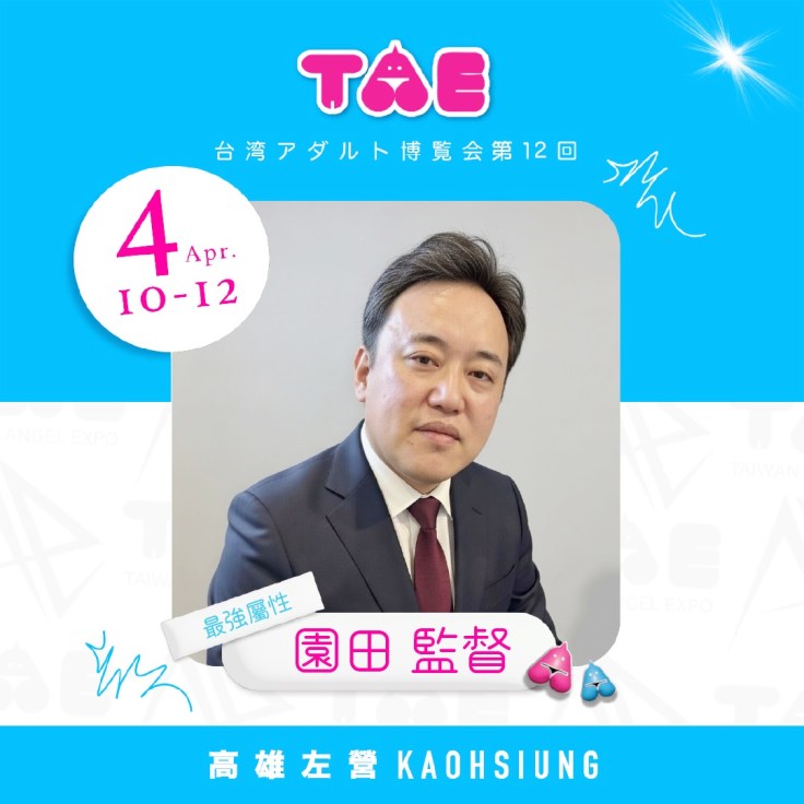 即將在 4 月 10 日至 12 日舉行的 TAE 「台灣成人博覽會」在高雄左營高鐵共構 10 樓國際活動展演中心盛大登場,現場匯聚日本當紅性感女優、帥氣男星、高人氣SG等人氣偶像,共襄盛舉!