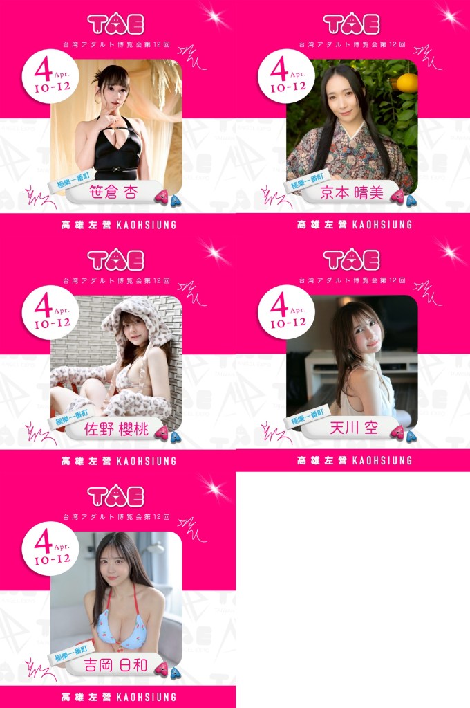 最引頸期盼的成人娛樂盛事, TAE「台灣成人博覽會」將於 4 月 10 日至 4 月 12 日在高雄「左營高鐵共構 10 樓國際活動展演中心」重磅登場!作為最具話題性的嘉年華,本屆集結日本當紅女優、帥萌男星、高人氣寫真女神、動漫女王等,注入前所未有的無限魅力。