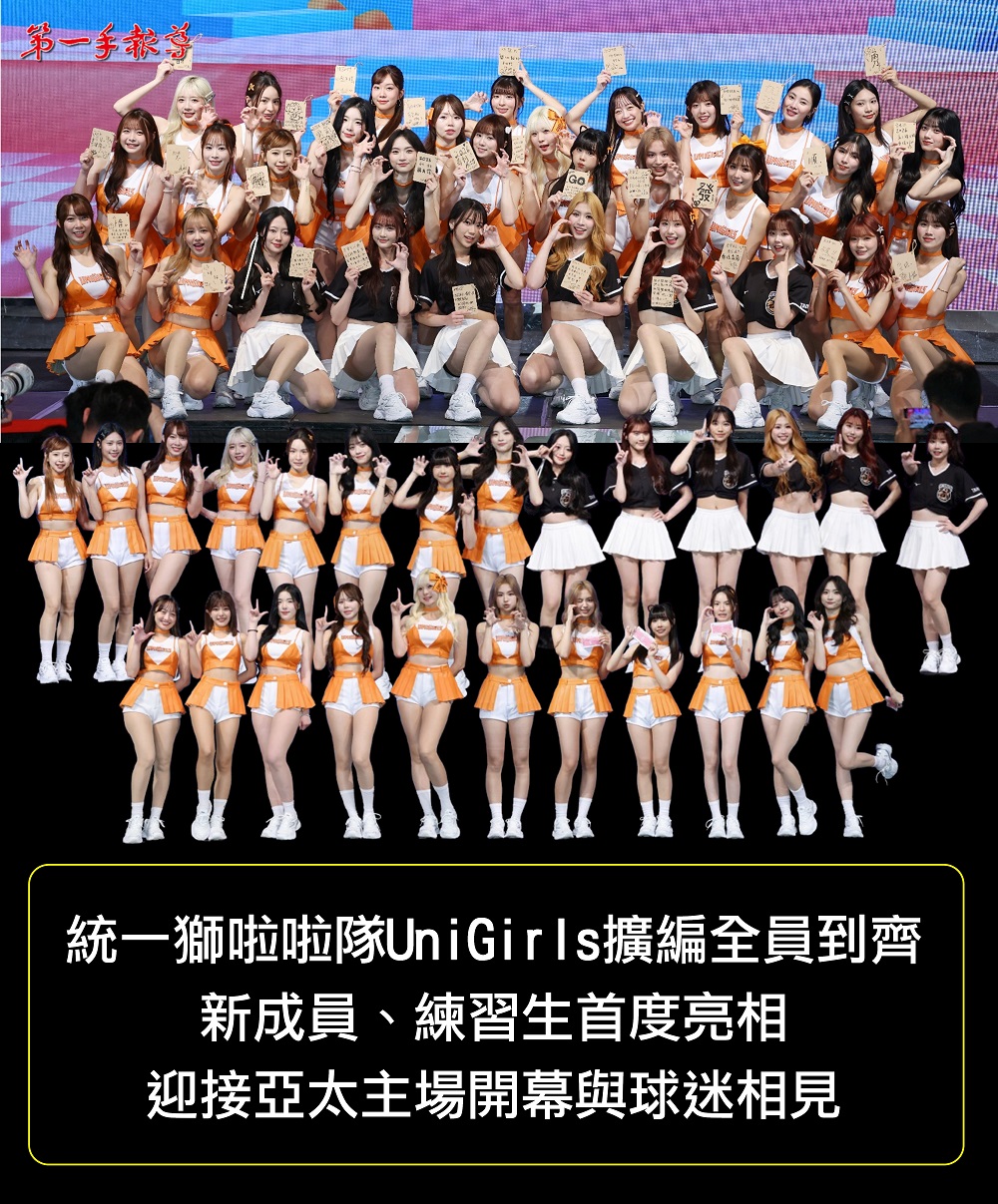 統一獅 UniGirls 舉辦 2026 新球季發表會,正式公布新成員安琪、子筑、姿琳、姸蓁、培根 5 位及練習生若婷、小妤、魚兒、羽娜、Ella、沐沐 6 位,創 UniGirls 成軍後團員人數新高!她們即將迎接 3 月 29 日統一獅亞太主場首戰開幕戰盛會,全體 UniGirls 也全員到齊,與球迷一起為統一獅加油應援。